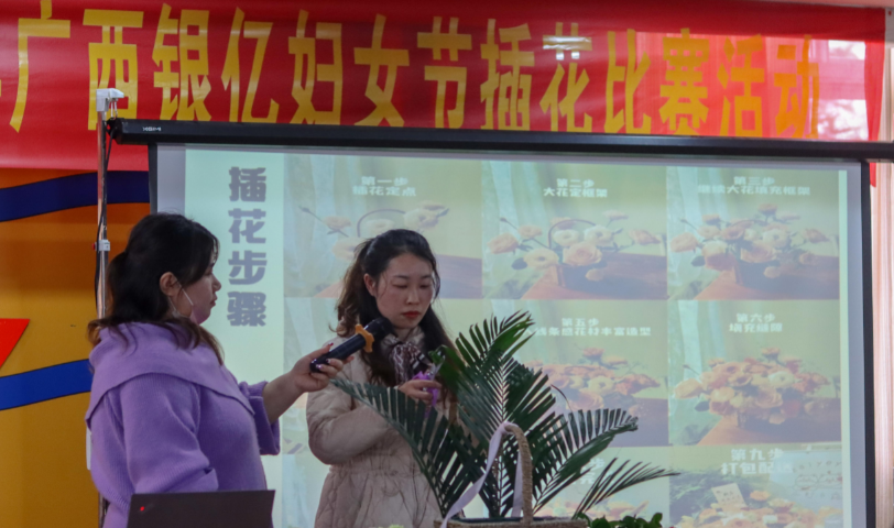 活動在鮮花芬芳中拉開帷幕,公司總工程師、工會主席和潤秀參加了活動并致辭,向全體女職工致以真摯的問候和美好的祝福,希望廣大女職工在搶抓機遇中擔(dān)當(dāng)作為、拼搏、奉獻,充分展現(xiàn)女性作用,為推動廣西銀億高質(zhì)量發(fā)展作出新的貢獻。此次活動吸引了廣大女職工積極參與,公司共有18個隊伍共計90名女職工參與了此次花藝大比拼。