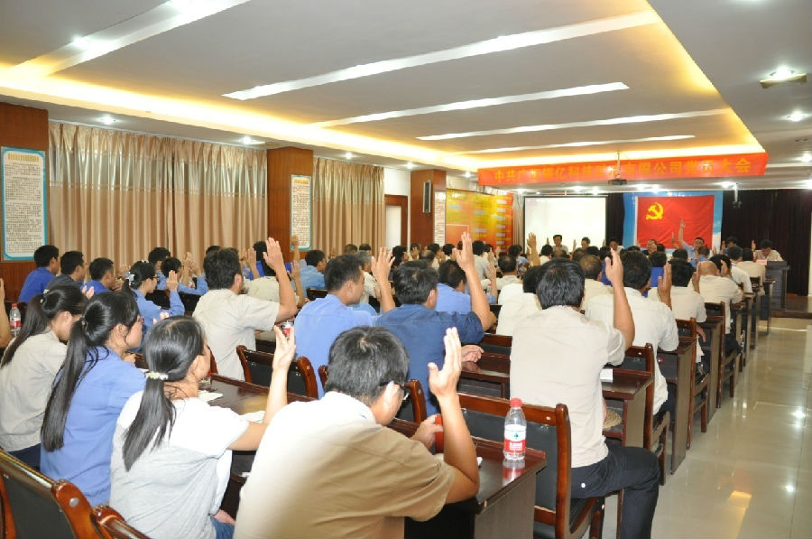 2015年7月1日,在中國(guó)共產(chǎn)黨建黨94周年到來(lái)之際,經(jīng)上級(jí)黨委批復(fù)同意,廣西公司隆重召開中共廣西銀億科技礦冶有限公司委員會(huì)全體黨員大會(huì)。
