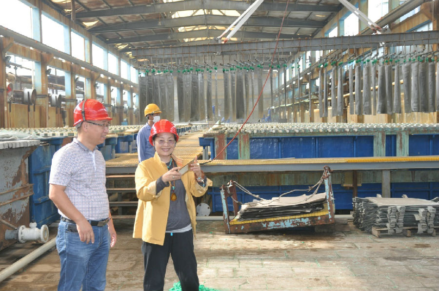 2015年11月5日上午,陽光和煦,秋高氣爽,集團(tuán)副總裁趙笑梅視察了廣西銀億科技礦冶有限公司的精煉三車間,精煉一車間、鎳鹽車間。廣西銀億副總經(jīng)理任衛(wèi)東、總經(jīng)理助理吳家明、副總工程師和潤秀、綜合管理辦公室主任章群宏陪同。