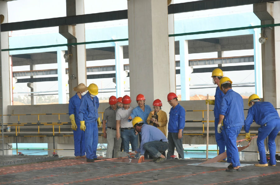 在精煉三車間,趙總從一樓走到二樓,邊走邊看,任總詳細(xì)向趙總匯報了精煉三車間的生產(chǎn)情況,生產(chǎn)工藝。精煉三車間是2014年新建的車間,2015年11月投產(chǎn),主要生產(chǎn)電積銅。趙總聽了任總的介紹,不停地點頭稱贊。在二樓,趙總停下來,認(rèn)真觀看工人對產(chǎn)出的銅板進(jìn)行外觀校正,看到光亮如鏡,四周整齊的銅板,連聲稱贊廣西銀億的制銅工藝確實先進(jìn),非常高興,不由自主的拿出智能手機(jī),拍下了車間工人勞動的情景。