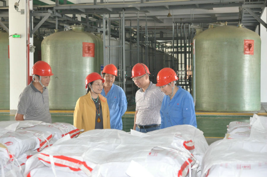不一會,車到了鎳鹽車間。走進(jìn)高大寬敞整潔的鎳鹽車間,一進(jìn)門,趙總就看到了堆放整齊的氯化鈷產(chǎn)品,走到產(chǎn)品邊,興奮地用手摸著氯化鈷產(chǎn)品,連聲稱贊:“產(chǎn)品好!包裝也好!”巡視車間設(shè)備運(yùn)行情況,趙總感到十分驚奇,諾大的車間,生產(chǎn)線設(shè)備運(yùn)行平穩(wěn),噪音小,無灰塵,管控人員少,監(jiān)控室多個屏幕,準(zhǔn)確的反映了設(shè)備運(yùn)行情況。車間主任張磊認(rèn)真的向趙總匯報了鎳鹽車間生產(chǎn)情況,并說鎳鹽車間目前還沒有完全投產(chǎn),部分生產(chǎn)設(shè)備正在安裝中,如果全部投產(chǎn),產(chǎn)量將翻一番。趙總聽了非常滿意,在車間與公司任總、吳總助、章主任、車間張主任合影。