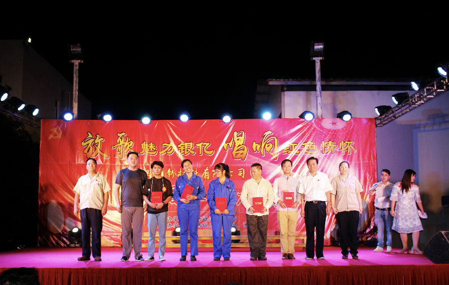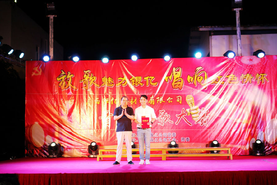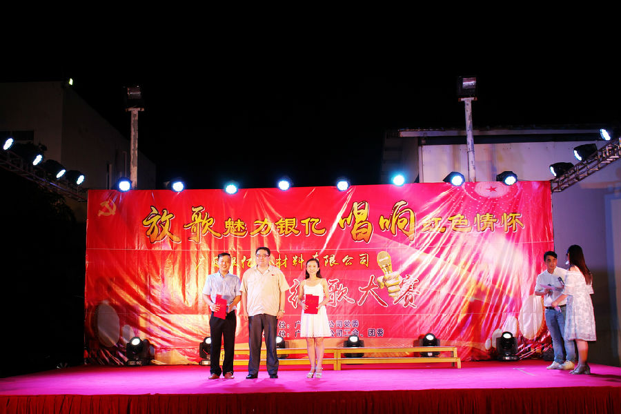 比賽競爭激烈,精品迭出,最后,浸出車間的《我的中國心》、鎳鹽車間張響的《中國人》、裝備部的合唱《團(tuán)結(jié)就是力量》、品管部廖永萬的《少年壯志不言愁》、研發(fā)部李炳強(qiáng)的《萬里長城永不倒》獲得三等獎。品管部馮春蓮的《走進(jìn)新時(shí)代》、銷售部黎波的《血染的風(fēng)采》演唱感人至深,榮獲二等獎。采購部朱旭波的《紅旗飄飄》將現(xiàn)場氣氛點(diǎn)燃至高潮,最終抱得冠軍!