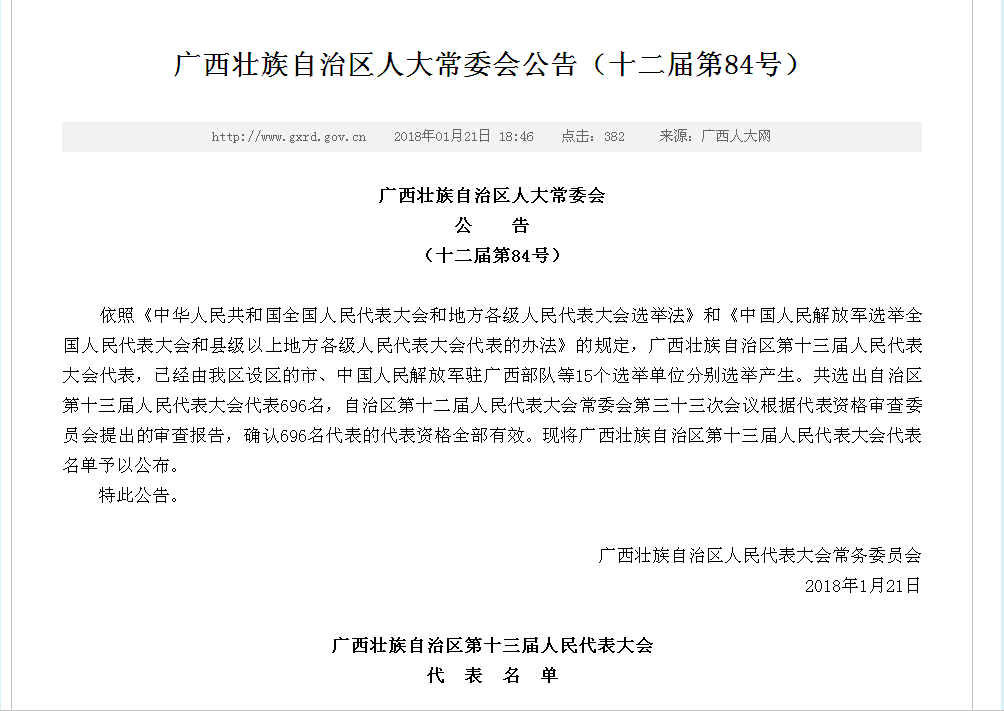2018年1月21日,經(jīng)廣西壯族自治區(qū)第十二屆人民代表大會常委會第三十三次會議審查,確認(rèn)由自治區(qū)15個選舉單位依法選舉產(chǎn)生的696名廣西壯族自治區(qū)第十三屆人民代表大會代表資格全部有效。廣西銀億90后員工張新陽當(dāng)選廣西壯族自治區(qū)第十三屆人民代表大會代表。