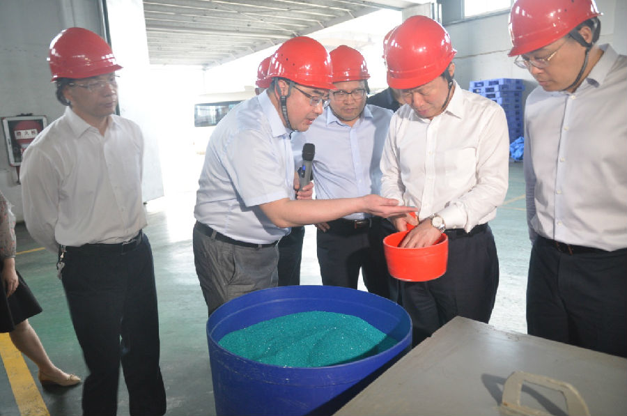 隨后,自治區(qū)黨委常委徐紹川一行在玉林市市長韋韜等縣市領(lǐng)導(dǎo)陪同下,視察了鎳鹽生產(chǎn)基地,對生產(chǎn)線工藝技術(shù)、產(chǎn)品質(zhì)量和裝備特點進(jìn)行了詳細(xì)咨詢和了解。徐紹川部長對我司生產(chǎn)基地現(xiàn)場的工作環(huán)境、先進(jìn)設(shè)備和產(chǎn)品實物質(zhì)量表示稱贊,對我司生產(chǎn)的產(chǎn)品表示充分肯定,并希望廣西銀億不斷提升企業(yè)綜合實力,加大技術(shù)資金投入,提高產(chǎn)銷規(guī)模和經(jīng)濟(jì)效益,不斷提升在行業(yè)和市場中的地位,并叮囑陪同的市、縣領(lǐng)導(dǎo)同志要為廣西銀億的做大做強(qiáng)、可持續(xù)發(fā)展提供積極的幫助和支持。