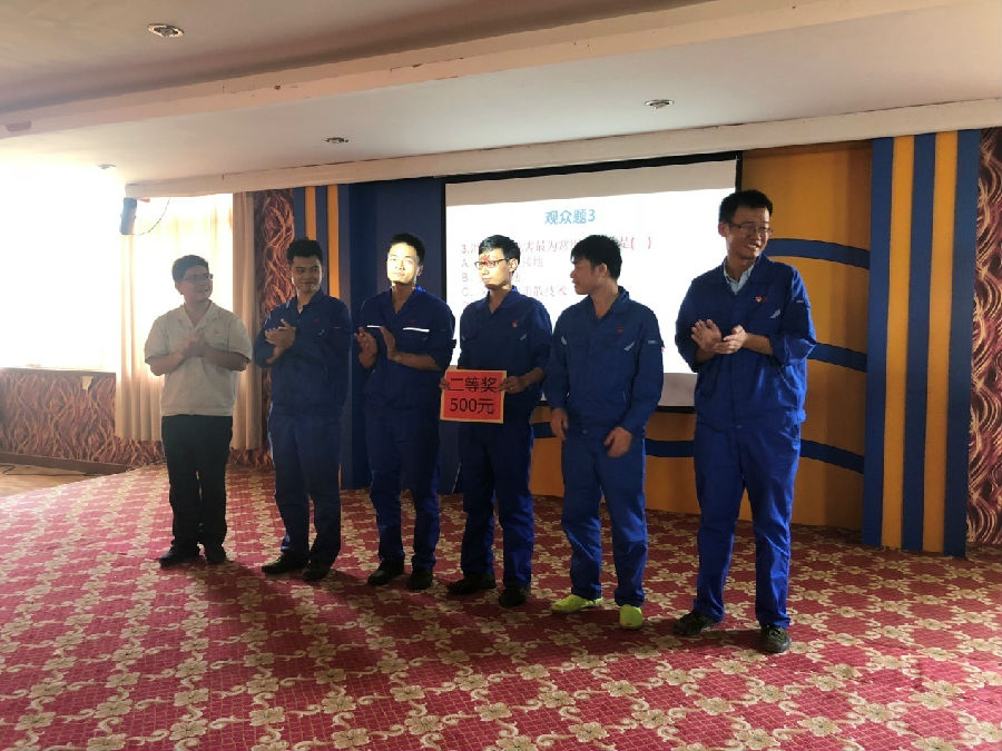 為深入開展安全生產(chǎn)月活動,提升安全管理水平,營造良好的安全文化氛圍,6月20日下午,廣西銀億圍繞“防風(fēng)險、除隱患、遏事故”為主題開展了安全知識競賽活動,此次競賽得到了公司領(lǐng)導(dǎo)的高度重視,章群宏副總經(jīng)理、朱新宇總經(jīng)理助理等領(lǐng)導(dǎo)來到現(xiàn)場為選手們加油打氣。競賽活動由各部門車間組合成5支隊(duì)伍共25名參賽選手,以必答題和搶答題形式,分為單項(xiàng)選擇題、判斷題、多項(xiàng)題、風(fēng)險題及現(xiàn)場觀眾有獎互動環(huán)節(jié)。比賽過程中,大家充分發(fā)揮自己掌握的安全知識,積極踴躍進(jìn)行答題,展示出了員工扎實(shí)的安全素養(yǎng),競賽活動現(xiàn)場氣氛熱烈,隊(duì)員們都精神十足,特別是搶答環(huán)節(jié)既緊張又激烈,各隊(duì)都是有備而來,志在第一。經(jīng)過幾輪激烈的角逐,最終水處理車間與裝備能源部組合隊(duì)獲得一等獎,鈷鹽車間與浸出車間組合隊(duì)獲得二等獎。